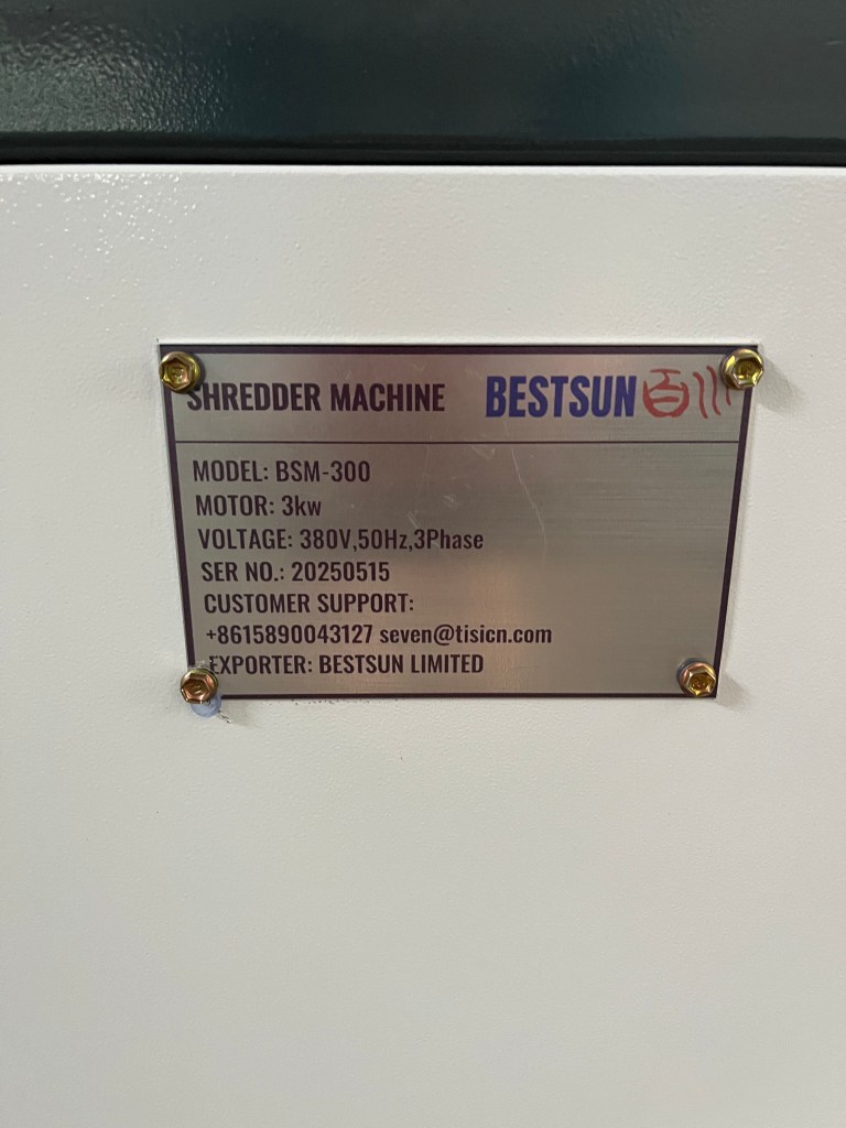 SPECIFICATION OF SMALL SHREDDER MACHINE BSM-300